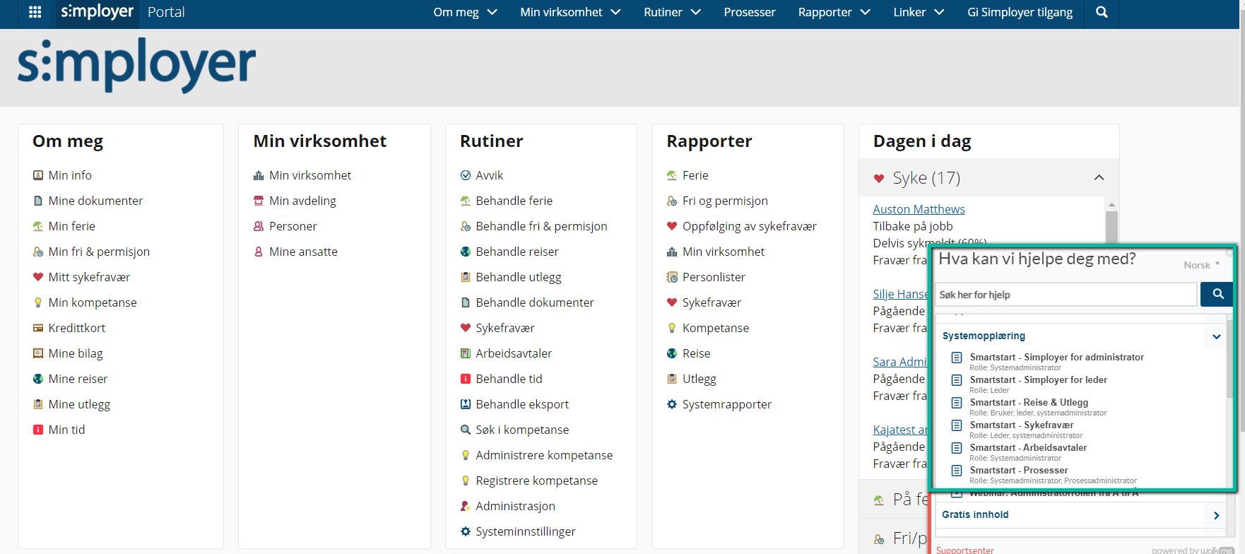 For deg som er Simployer HRM-kunde, er Smart Start-kursene er tilgjengelig via interaktiv hjelp når du er logget inn i Simployer.