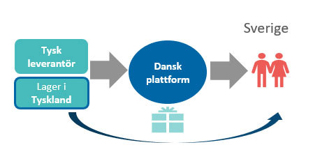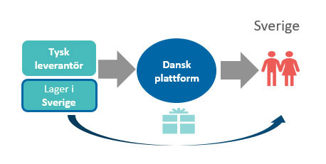I exemplen nedan förutsätter vi att plattformen i eget namn säljer varor samt ansvarar för transporten av varan från den bakomliggande leverantören direkt till konsumenten.