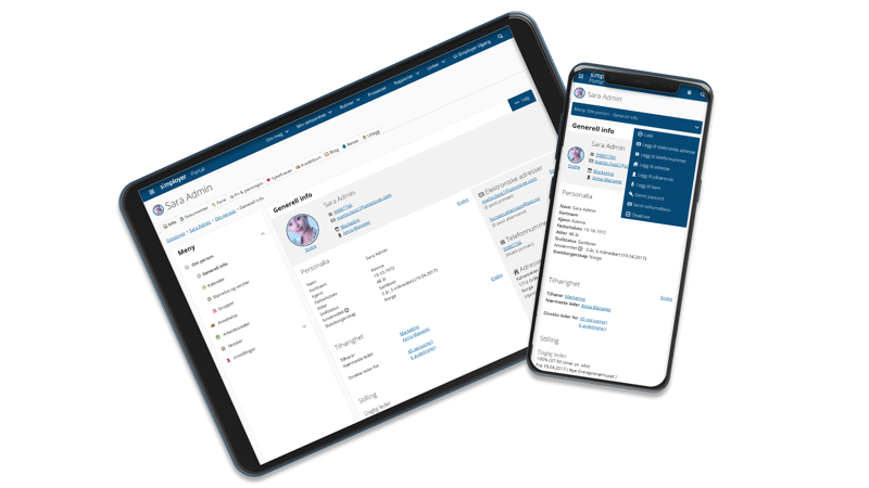 - Ansatte vedlikeholder selv persondata og registrerer fravær og ferieønsker